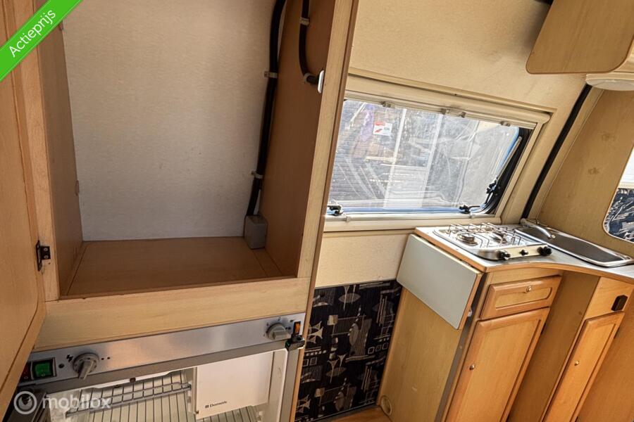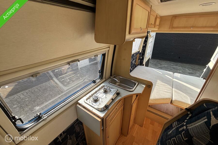 Aan de achterkant vind je een ruime garage, ideaal voor het opbergen van al je kampeerspullen en sportuitrusting. Binnen is er een gezellige treinzit waar je kunt ontspannen en genieten van een heerlijke maaltijd, bereid in de mooie keuken met wasbak, kraan en een 2-pits gasstel. De koelkast met vriezer zorgt ervoor dat je altijd verse producten bij de hand hebt. En met de badkamer inclusief wc en wasbak met kraan, heb je alle gemakken aan boord. Na een lange dag kun je heerlijk uitrusten in het vaste bed. De achteruitrijcamera maakt manoeuvreren en parkeren een fluitje van een cent. Kortom, deze camperbus is volledig uitgerust en klaar om de wereld te verkennen!