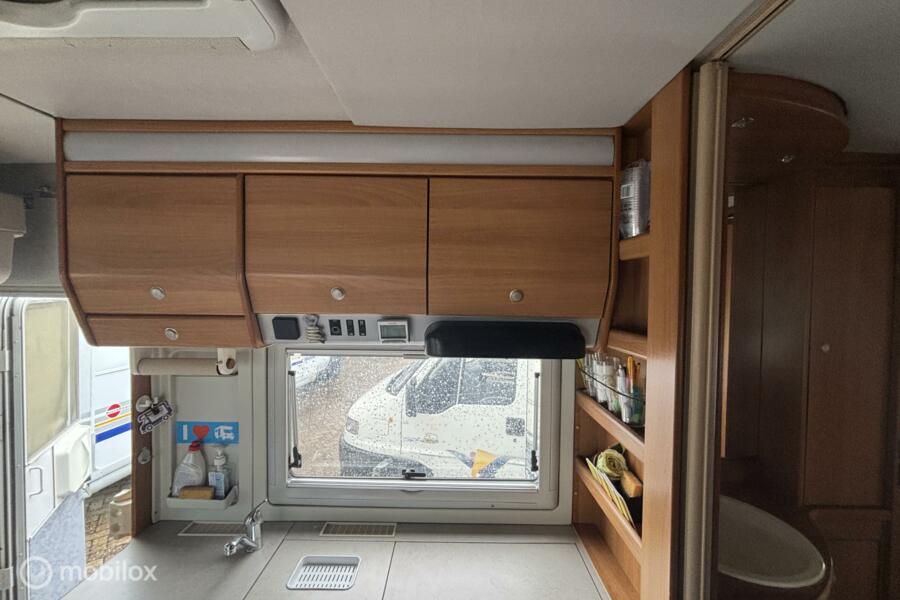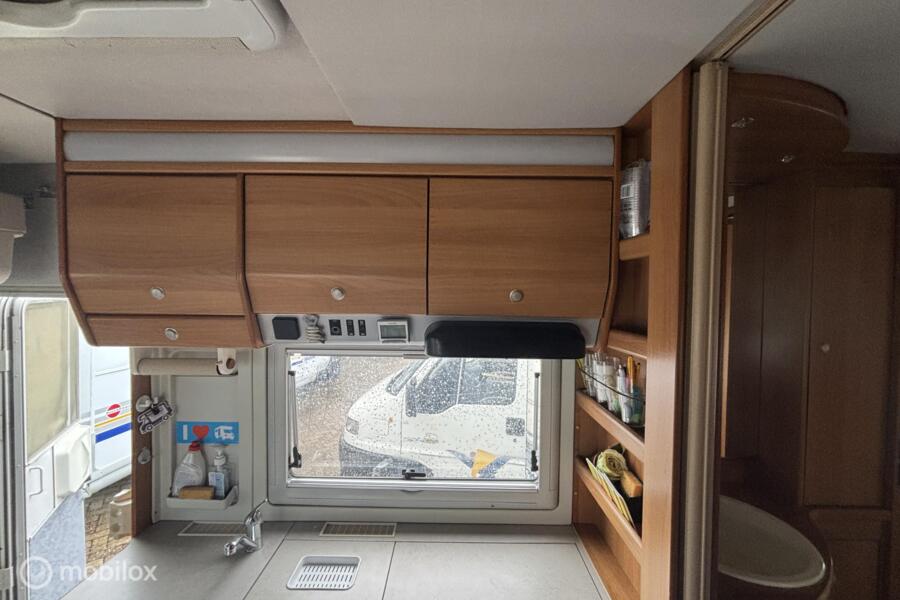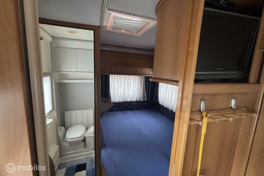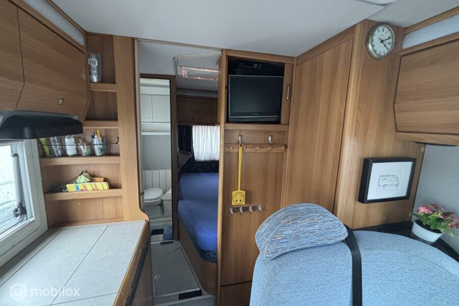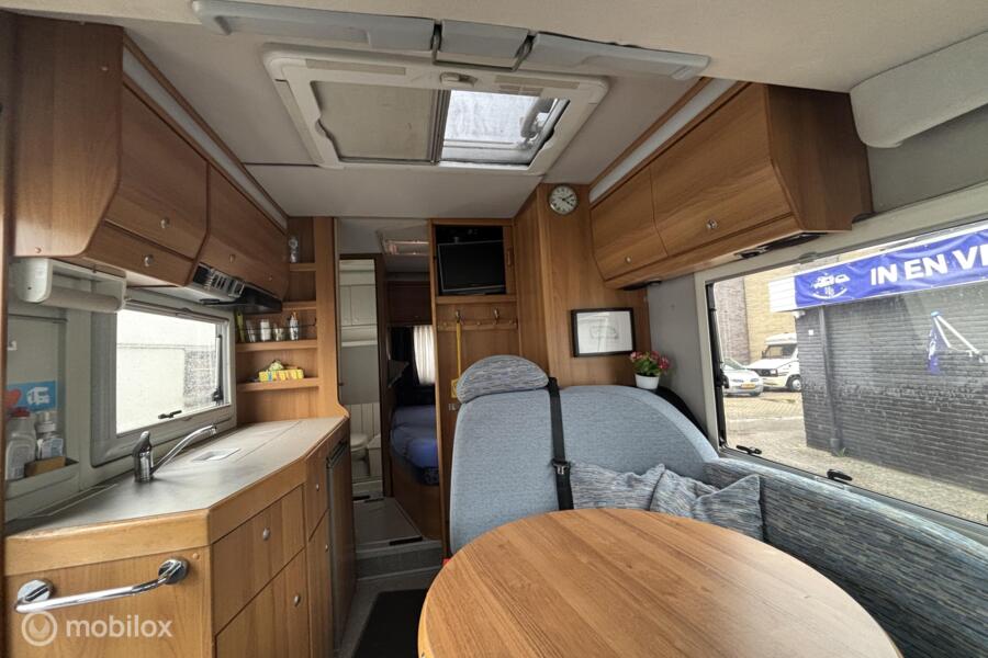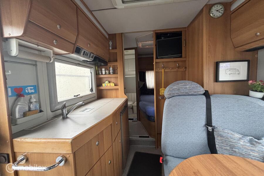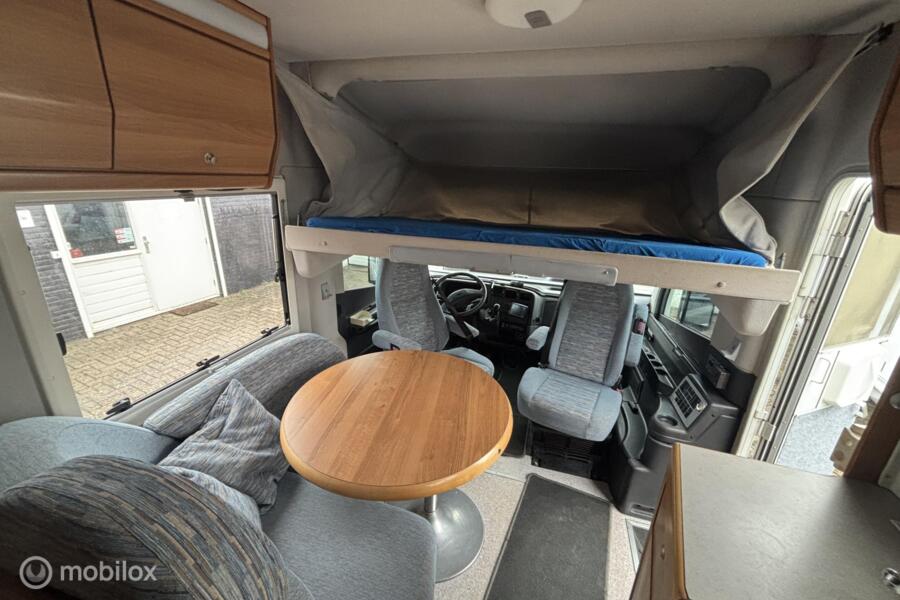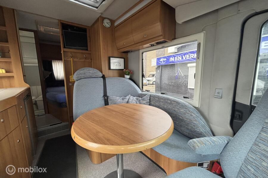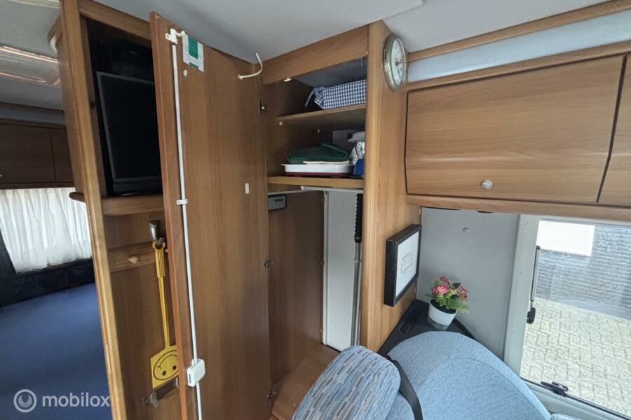 * Comfortabel reizen: Motorairco zorgt voor een aangename temperatuur, waar je ook bent. * Entertainment: Geniet van je favoriete programma's op de ingebouwde tv. * Sanitair: Eigen toilet aan boord voor maximale privacy en gemak. * Veiligheid: Achteruitrijcamera voor moeiteloos manoeuvreren. * Flexibiliteit: Draaibare voorstoelen creëren een gezellige zithoek. * Sportief: Fietsenrek voor het meenemen van je fietsen. * Extra slaapplaatsen: Hefbed voor extra comfort en ruimte. * Autarkie: Schotelantenne voor onafhankelijk tv-kijken. * Extra: Ruime garage, luifel, complete keukenuitrusting.